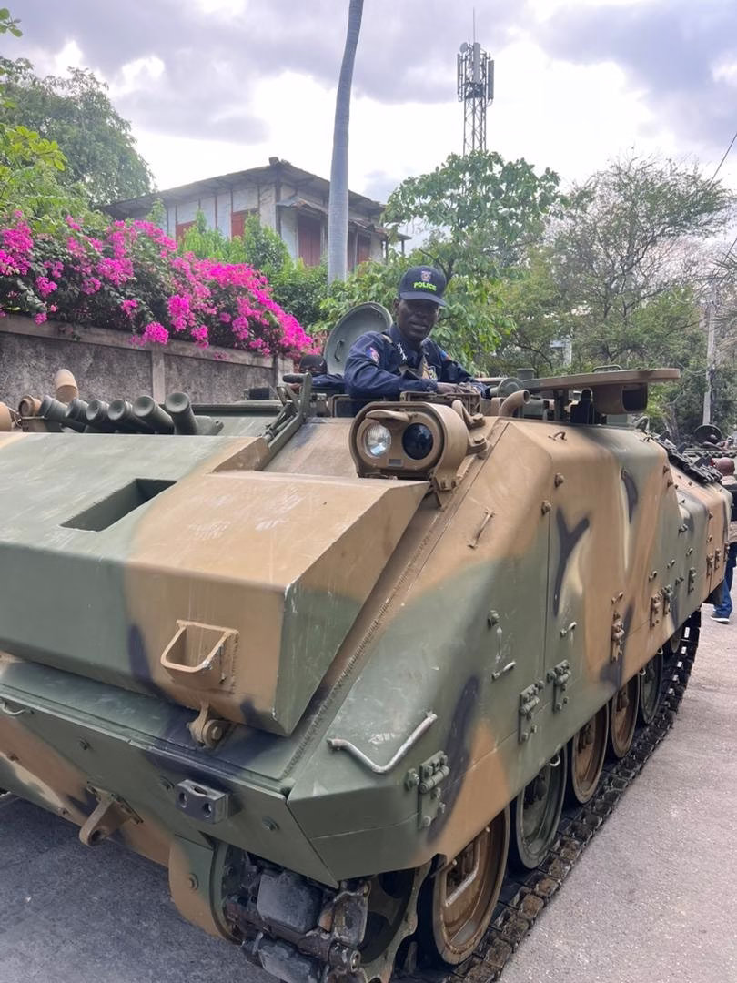 Ces véhicules blindés de combat ont été offerts à la police haïtienne par la Corée du Sud dans le cadre de sa coopération avec le gouvernement haïtien, a informé la PNH dans une publication sur sa page Facebook, accompagnée de photos des blindés abord de l’un desquels apparait le directeur général a.i de la police, André Jonas Vladimir Paraison.